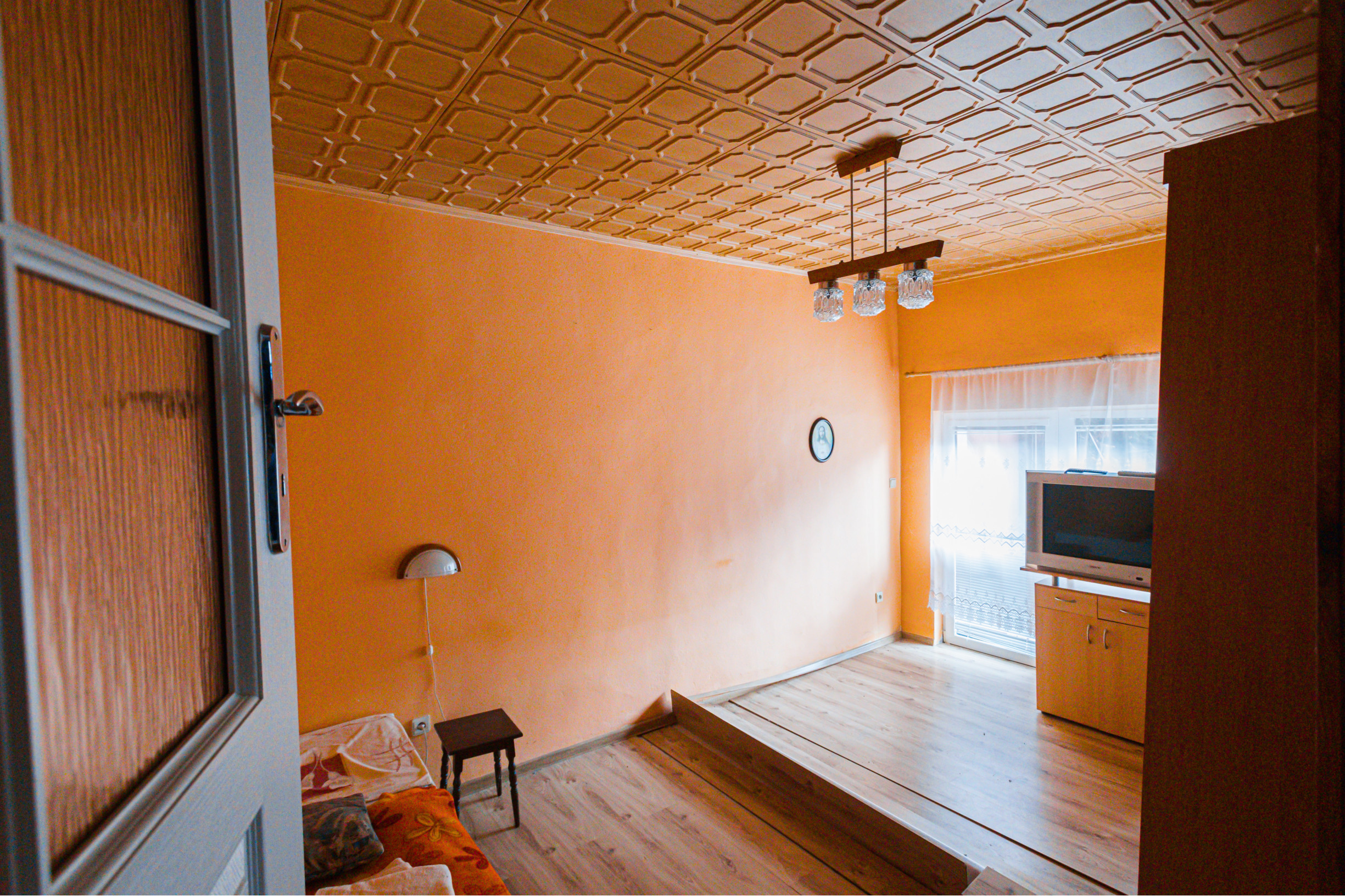 Na prízemí bola garáž prerobená na izbu.