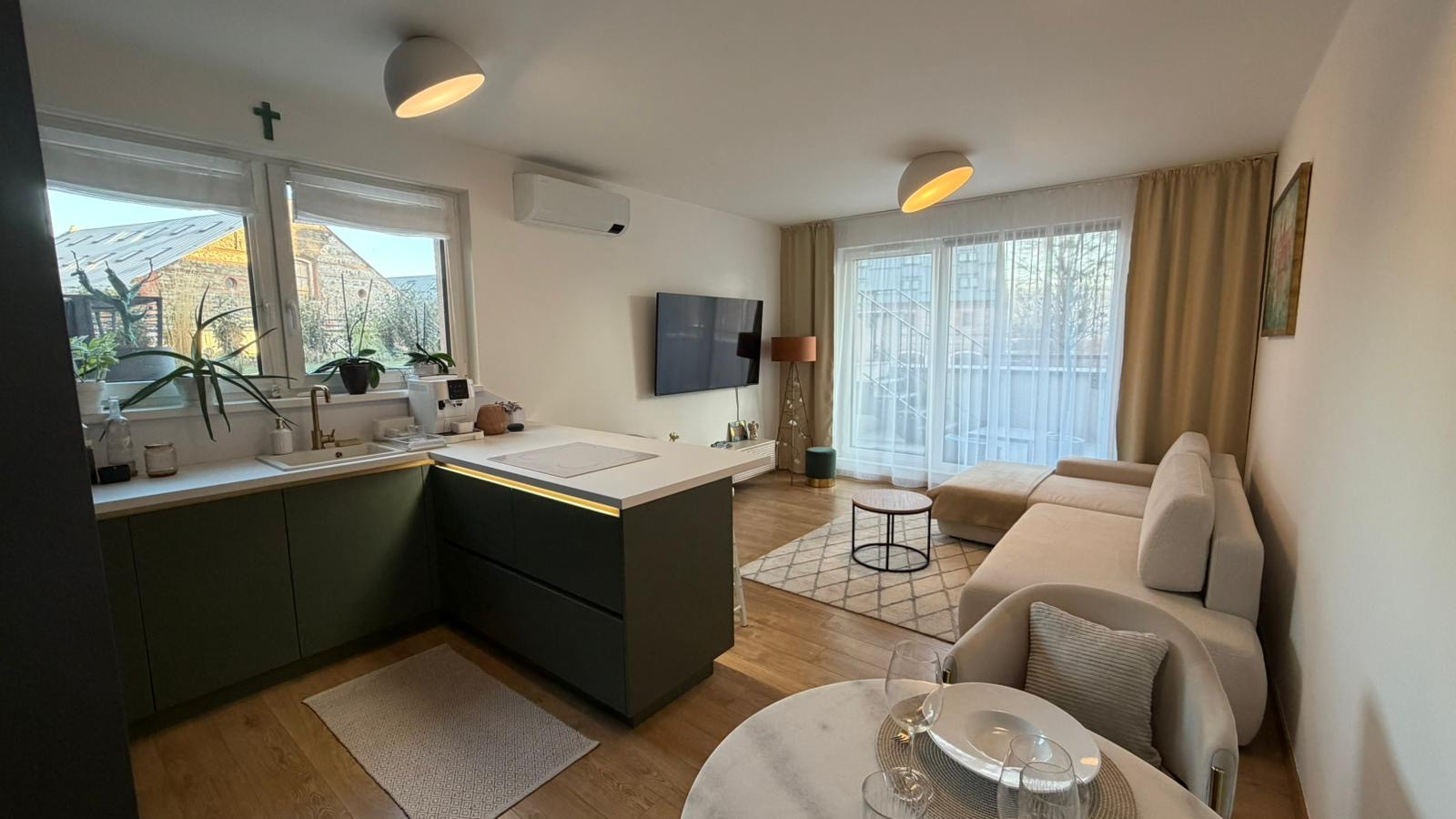 Norbert Mészaros a Leaders & Partners reality s.r.o. ponúka na predaj so súhlasom majiteľa 2 izbový byt v novostavbe rezidencie ALBELLi. Byt je na 1 poschodí zo siedmich v zateplenom bytovom dome. byt je o výmere 51 m2, pivničný priestor 4 m2, terasa 10 m2 a predzáhrada 136 m2. K bytu prislúcha parkovacie miesto v cene 28 000eur (nie je súčasťou ceny). Dispozíciu bytu tvorí vstupná chodba, obývacia izba spojená z kuchyňou a jedálňou, samostatná spálňa, kúpeľňa so sprchovym kútom, práčka a WC. Byt je kompletne zariadený. V chodbe je vešiaková stena a botník, kuchyňa disponuje kuchynskou linkou na mieru a vstavaným spotrebičmi, pult na stolovanie s barovým stoličkami a jedálenský stôl, v obývačke je k dispozícií sedacia súprava s konferenčným stolíkom, TV zostava a vspálni je vstavaná skriňa, polohovatelná manželská posteľ a komoda. K bytu prislúcha pivničný priestor na poschodí a terasa s východom z obývacej izby a predzáhradka so zeleným trávnikom , kde nájdete okrasné rastliny a kríky. Na záhrade je aj záhradný nábytok pre spoločne chvíle pre posedenie s rodinou a priateľmi. Občianska vybavenosť je v okolí na výbornej úrovni s prístupom do centra mesta 10 min pešou chôdzou.