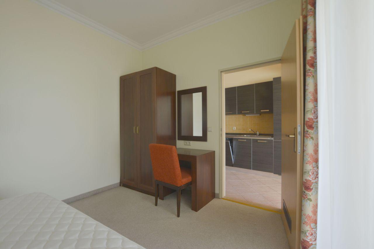 Realitná kancelária Leaders & Partners vám ponúka na predaj zariadený apartmán 2+kk (88 m²) s loggiou s bočným výhľadom na more v hotelovom komplexe Sunset Resort v lokalite Pomorie v Bulharsku. Rezort poskytuje komfortné bývanie s viacerými bazénmi, spa komplex, fitness centrum a výbornu polohou len približne 100 metrov od pláže.