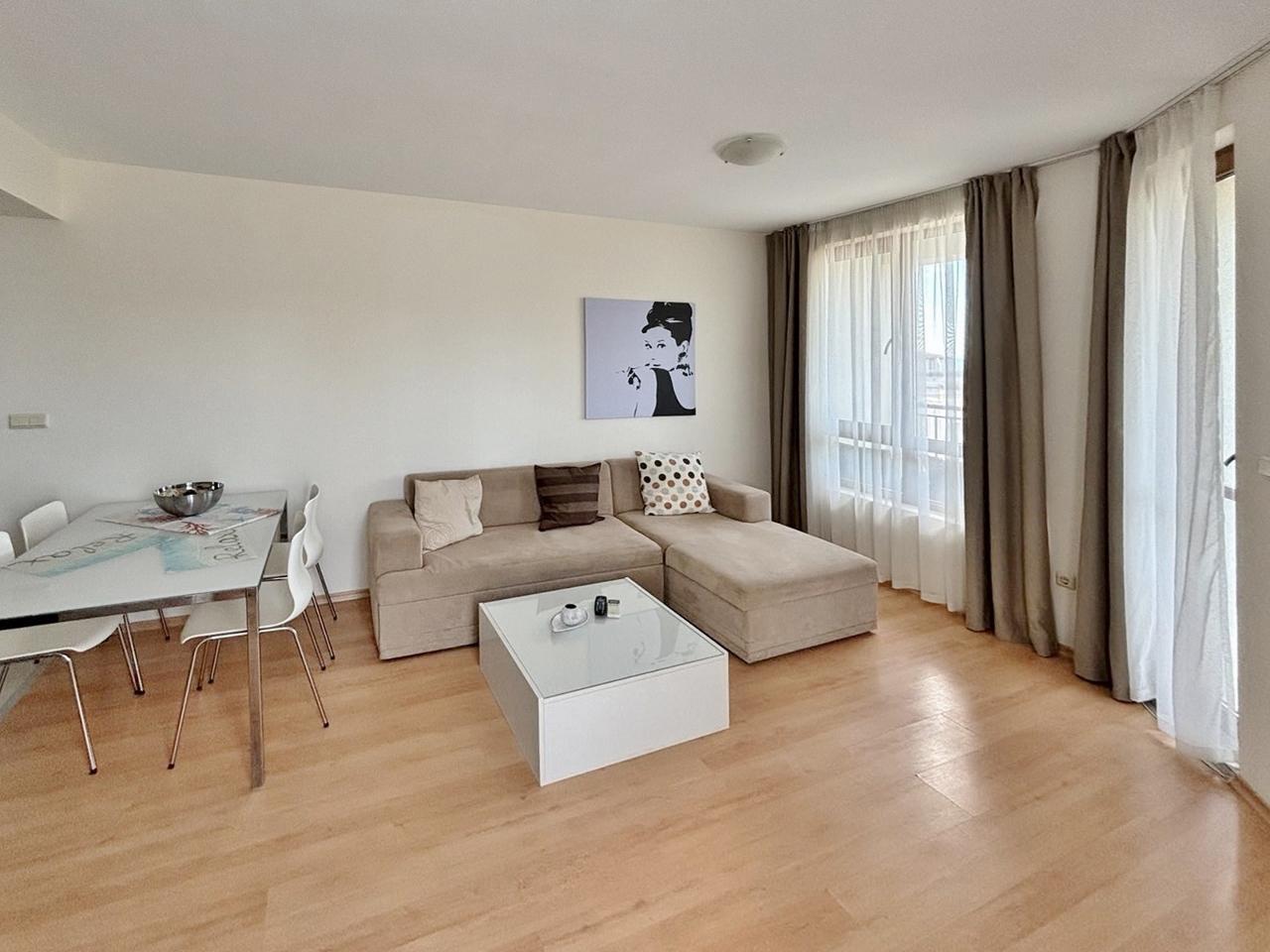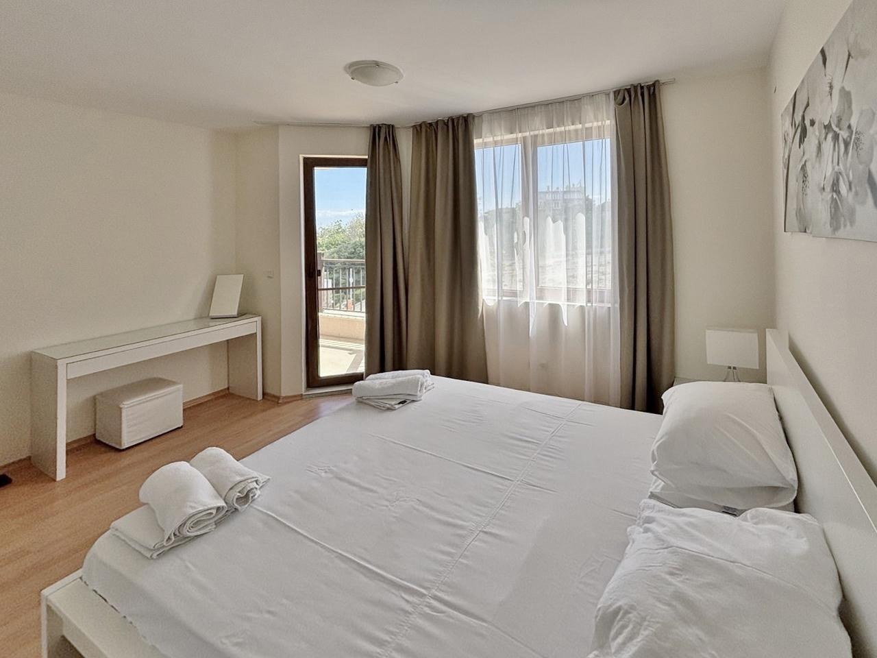 Realitná kancelária Leaders & Partners Vám ponúka na predaj pekný zariadený apartmán 2+kk (68 m²) s 2 terasami a spoločným bazénom v rekreačnom komplexe Vista Beach Byala v lokalite Byala-Varna v Bulharsku. Apartmán sa nachádza 200 m od pláže.