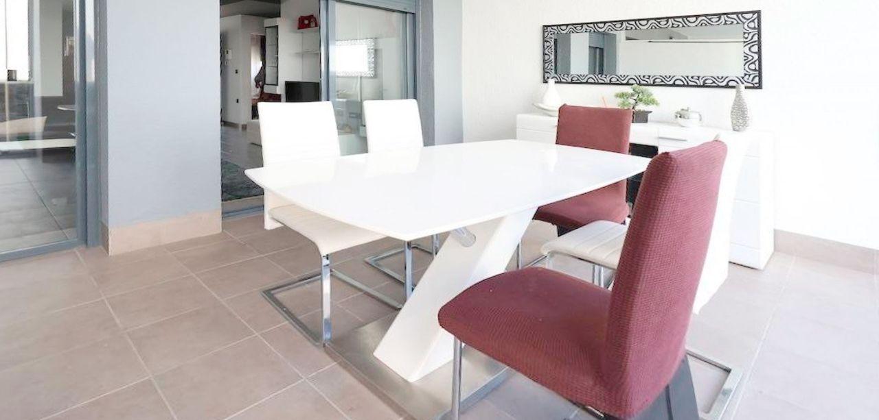 Realitná kancelária Leaders & Partners Vám ponúka na predaj zariadený apartmán 3+kk (77 m²) s dvoma kúpeľňami a terasou v peknom rezidenčnom komplexe s radovými domami a spoločným bazénom vo vyhľadávanej lokalite Orihuela Costa – La Zenia v Španielsku. Apartmán sa nachádza približne 2 km od pláže Playa Flamenca. Parkovanie je zabezpečené v oplotenom areáli.
