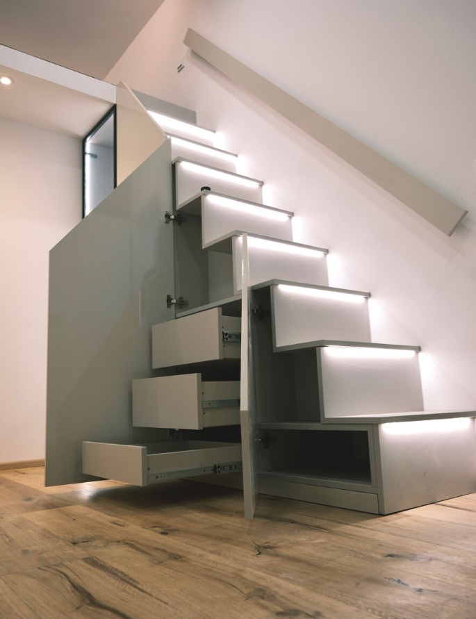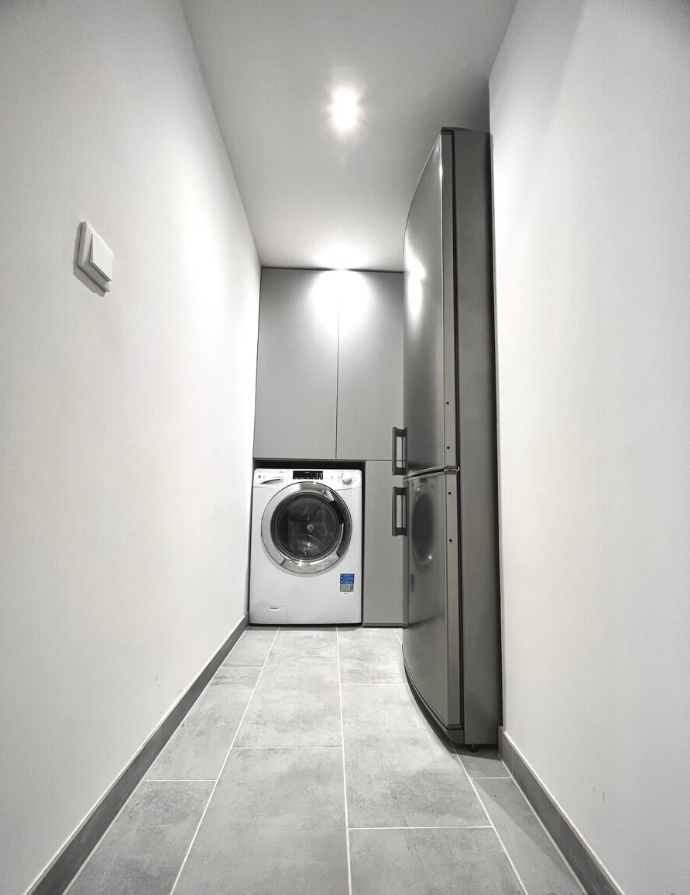 → Komora s priestorom na práčku, chladničku a úložný nábytok
