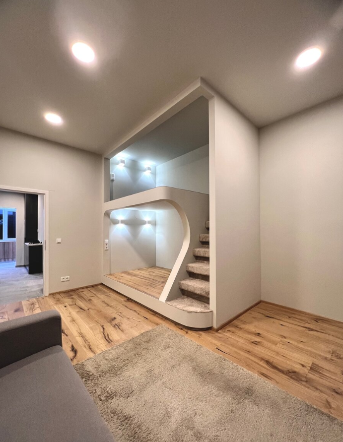 → Stav: po kompletnej rekonštrukcii s kvalitnými materiálmi (drevo, parkety)