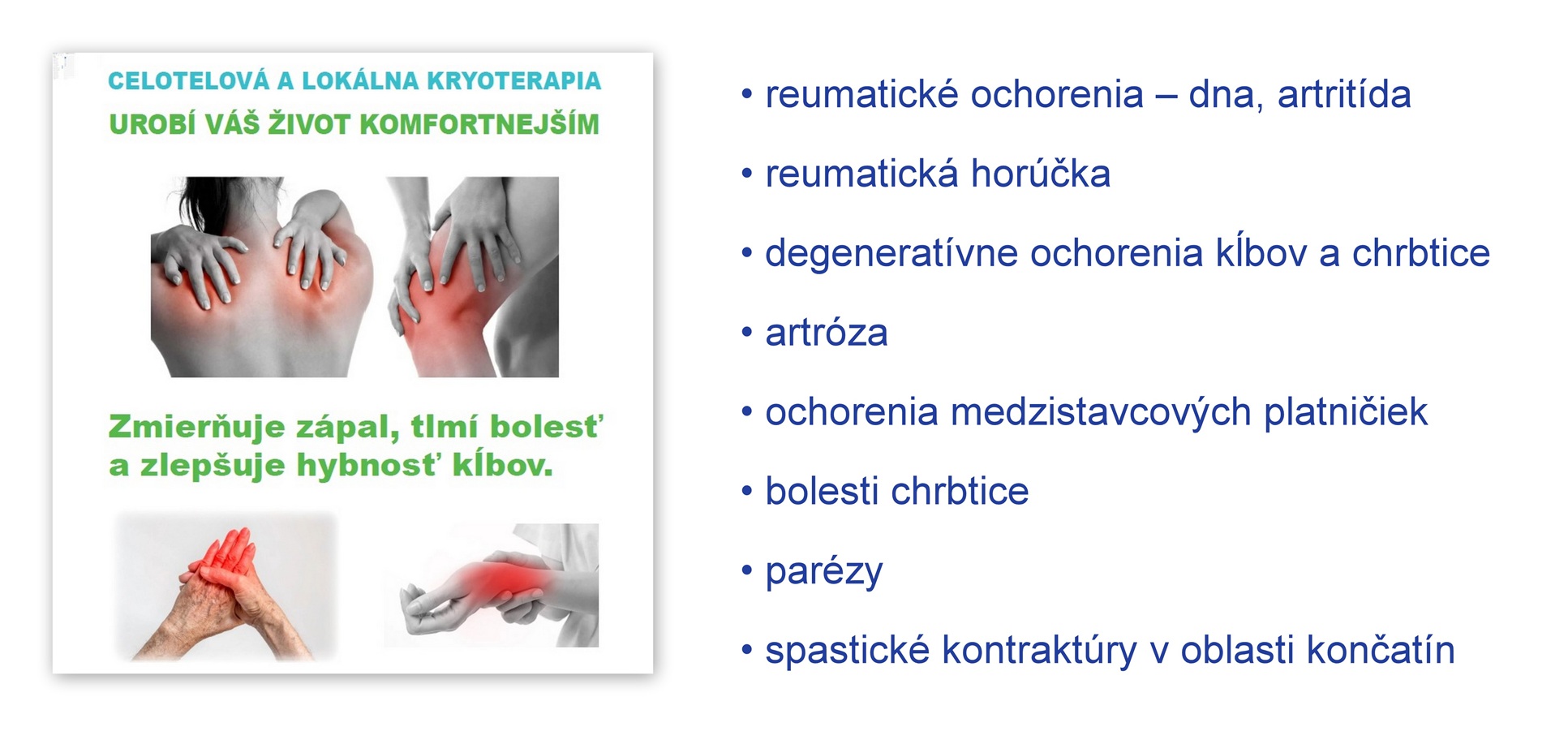 👉 LOKÁLNA KRYOTERAPIA ⁃ pomáha od bolesti, opuchu, zápalu. Rehabilitácia poúrazových, pooperačných stavov, reuma, kożné ochorenia, atď.