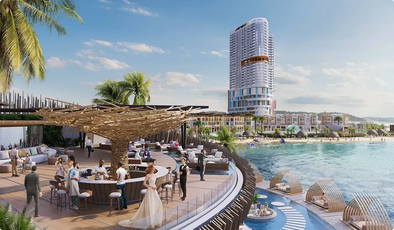 K dispozícii sú bazény, areál vodných aktivít, posilňovňa a priestor na jogu, vonkajšie a vnútorné detské ihriská, priestory na prechádzky, kúpele a sauna, reštaurácie a kaviarne, plážový klub, pracovný priestor a pouličná maloobchodná zóna.