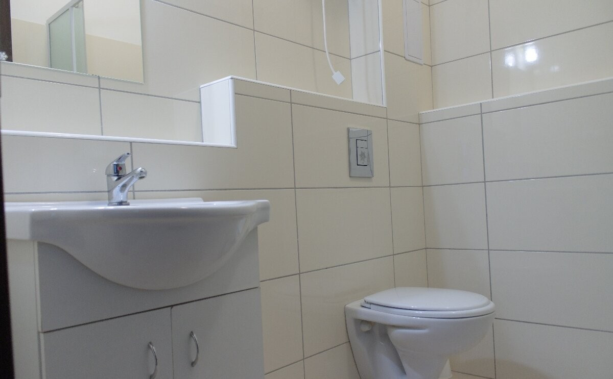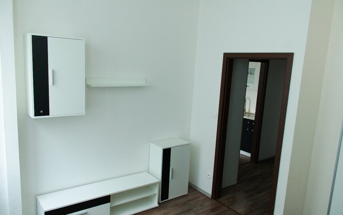 Dispozične byt pozostáva zo vstupnej chodby , kúpeľňa s toaletou , obývacia miestnosť s kuchyňou , spálňa.