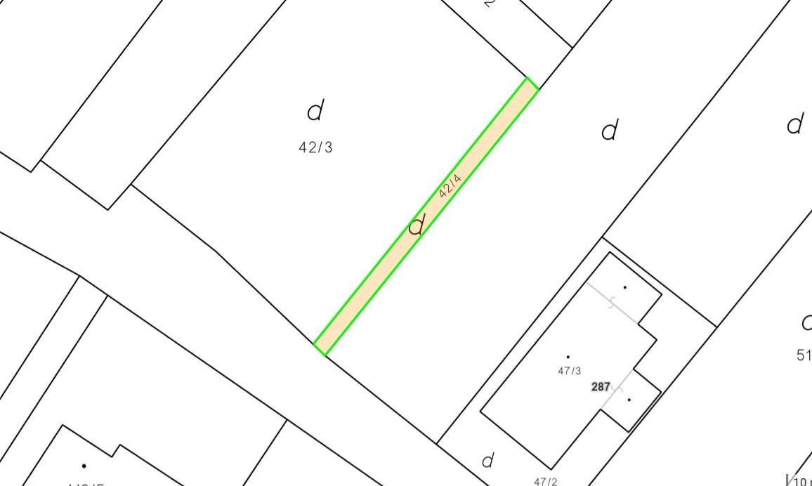 Pozemok sa rozprestiera na pozemku s celkovou rozlohou 790m2 z čoho šírka pozemku je 23m. Pozemok je celý oplotený. Parcelné čísla predávanhé pozemku sú 42/3 a 42/4.