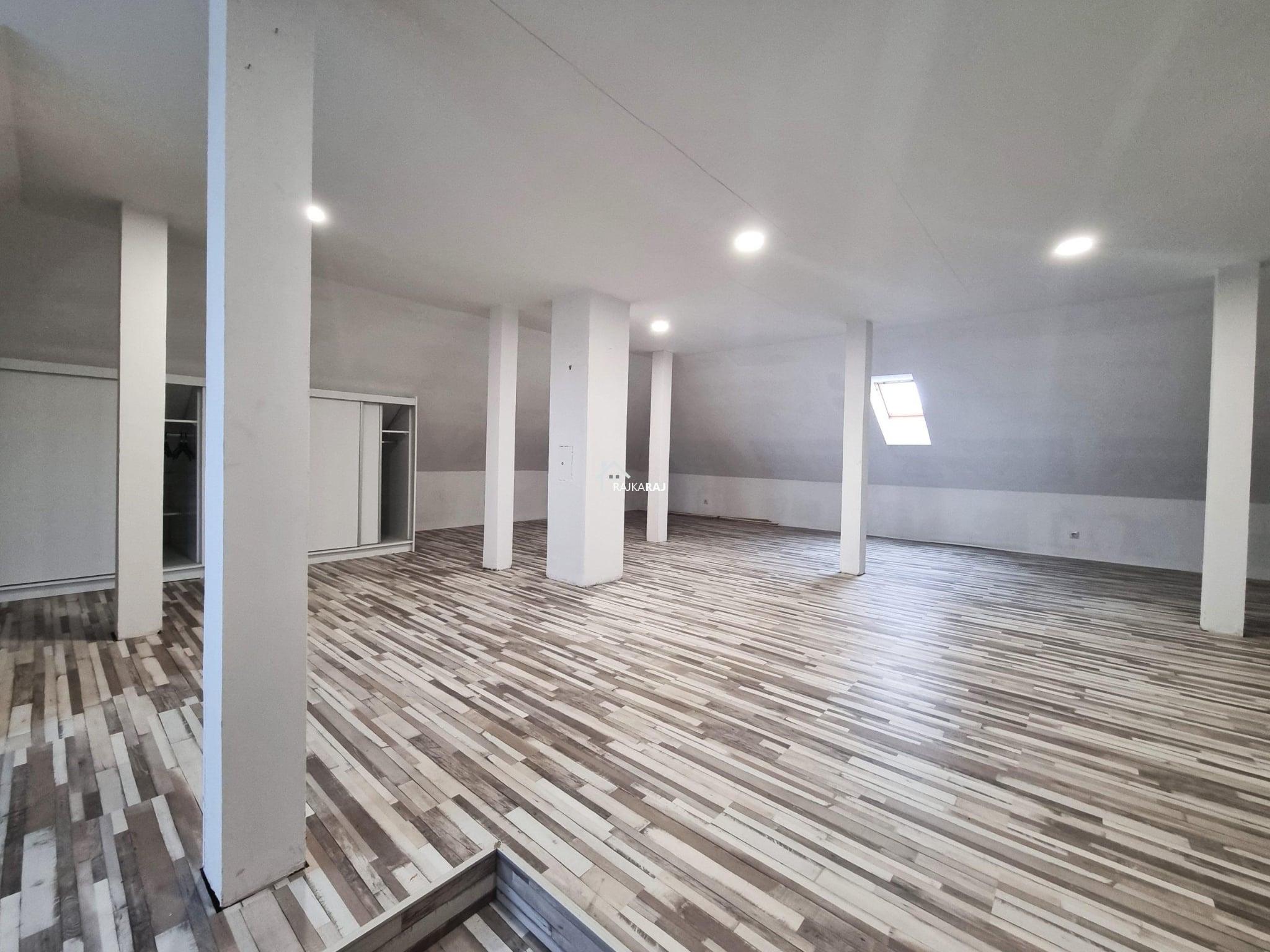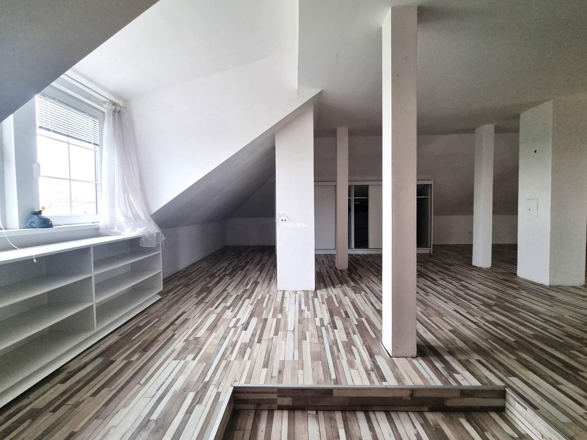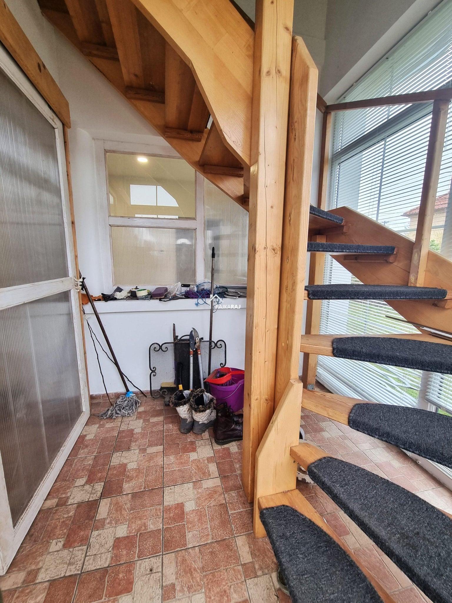 Z tepelne izolovanej presklenej verandy vedie drevené schodisko do podkrovia, kde sa nachádza otvorený, vykurovateľný obytný priestor. Podkrovie je momentálne riešené ako jednoprienstorové, no podľa potreby ho možno rozdeliť na viac miestností.