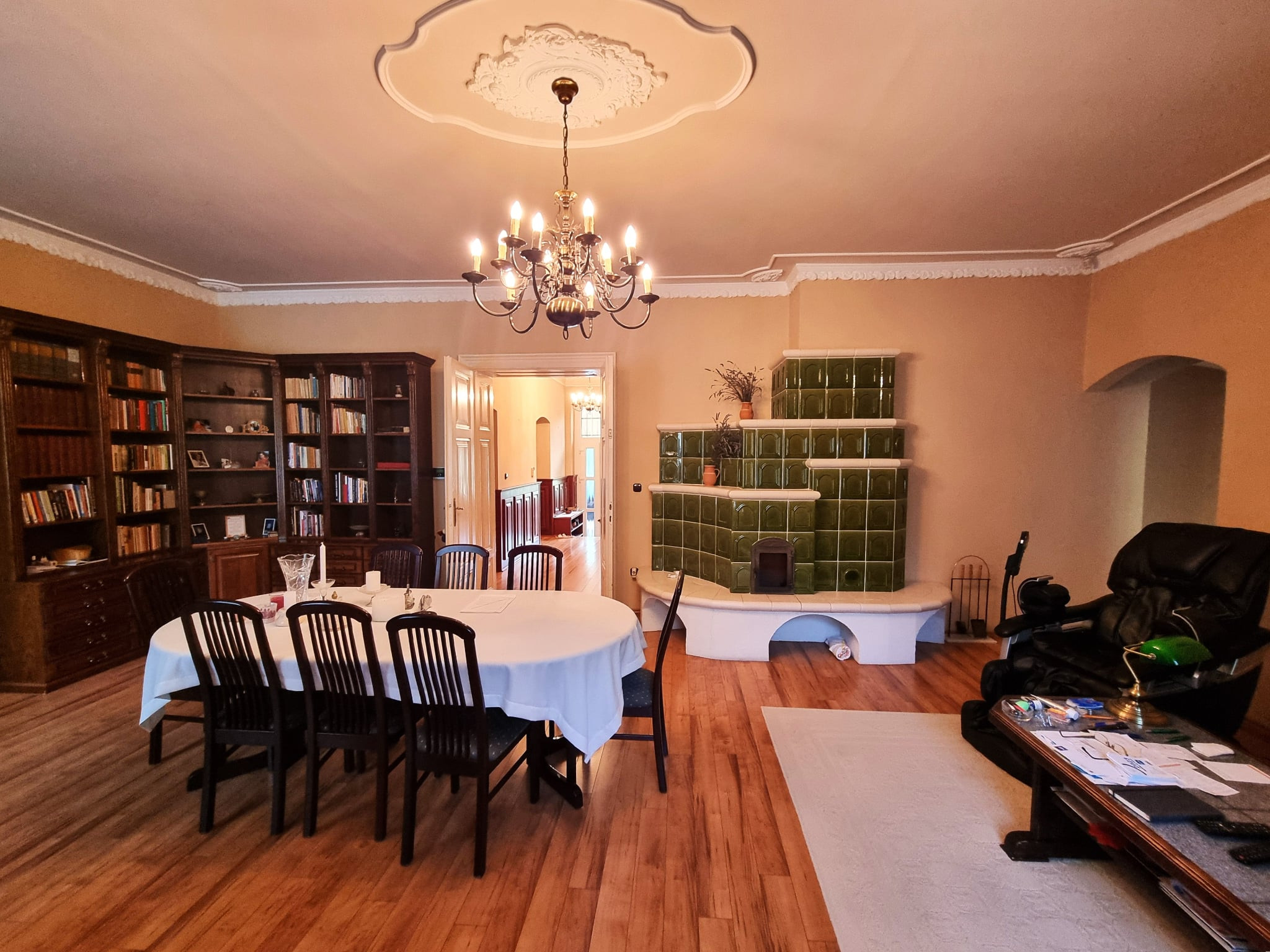 V obývacej izbe je tiež útulná kachľová pec + zmiešaný vykurovací kotol.
