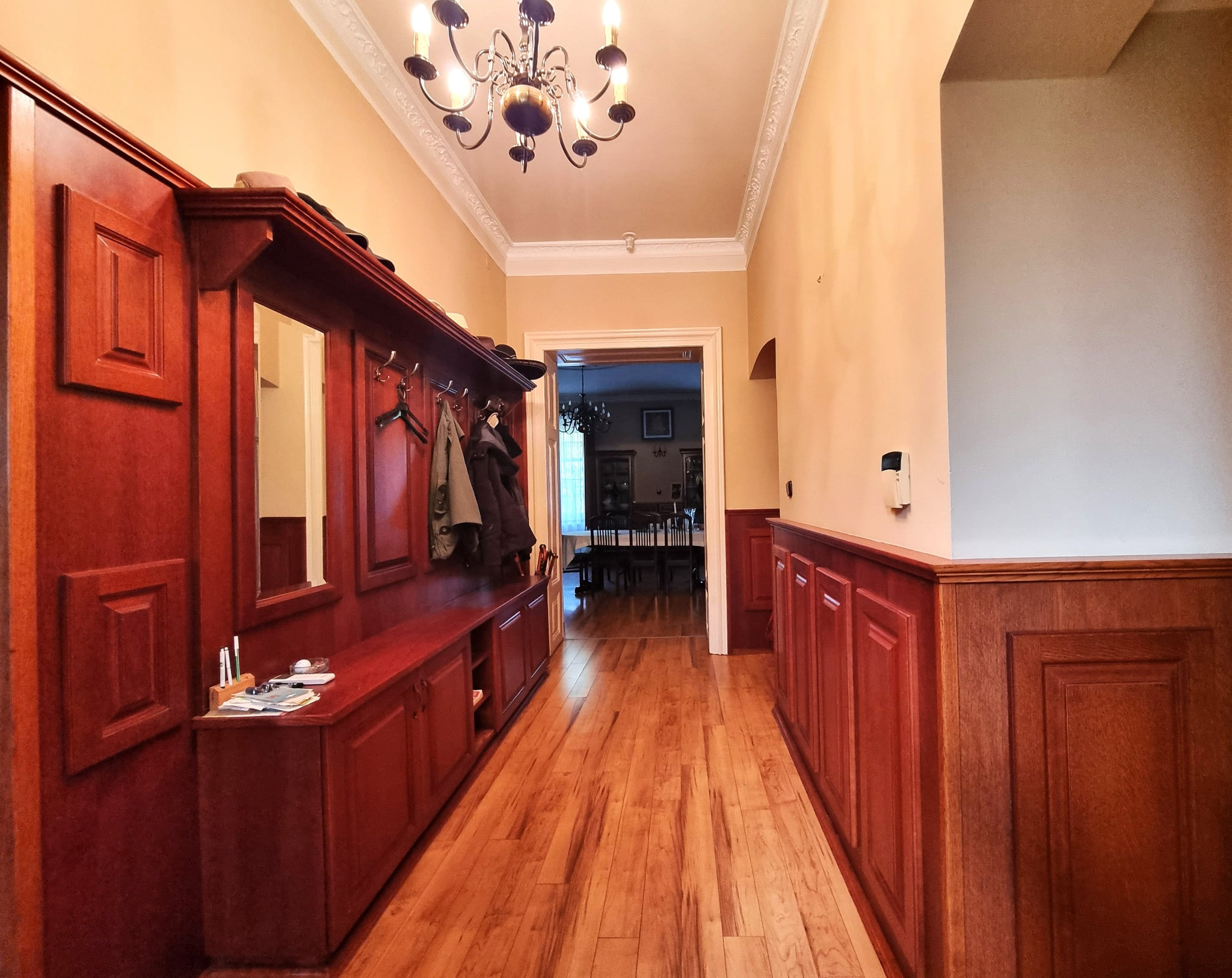 Dispozícia: vstupná hala, kuchyňa/jedálenská časť, 4 veľké izby, obrovská hala/obývacia časť, 2 kúpeľne s vaňami + jedna z kúpeľní má sprchu s bidetom + 2 toalety.