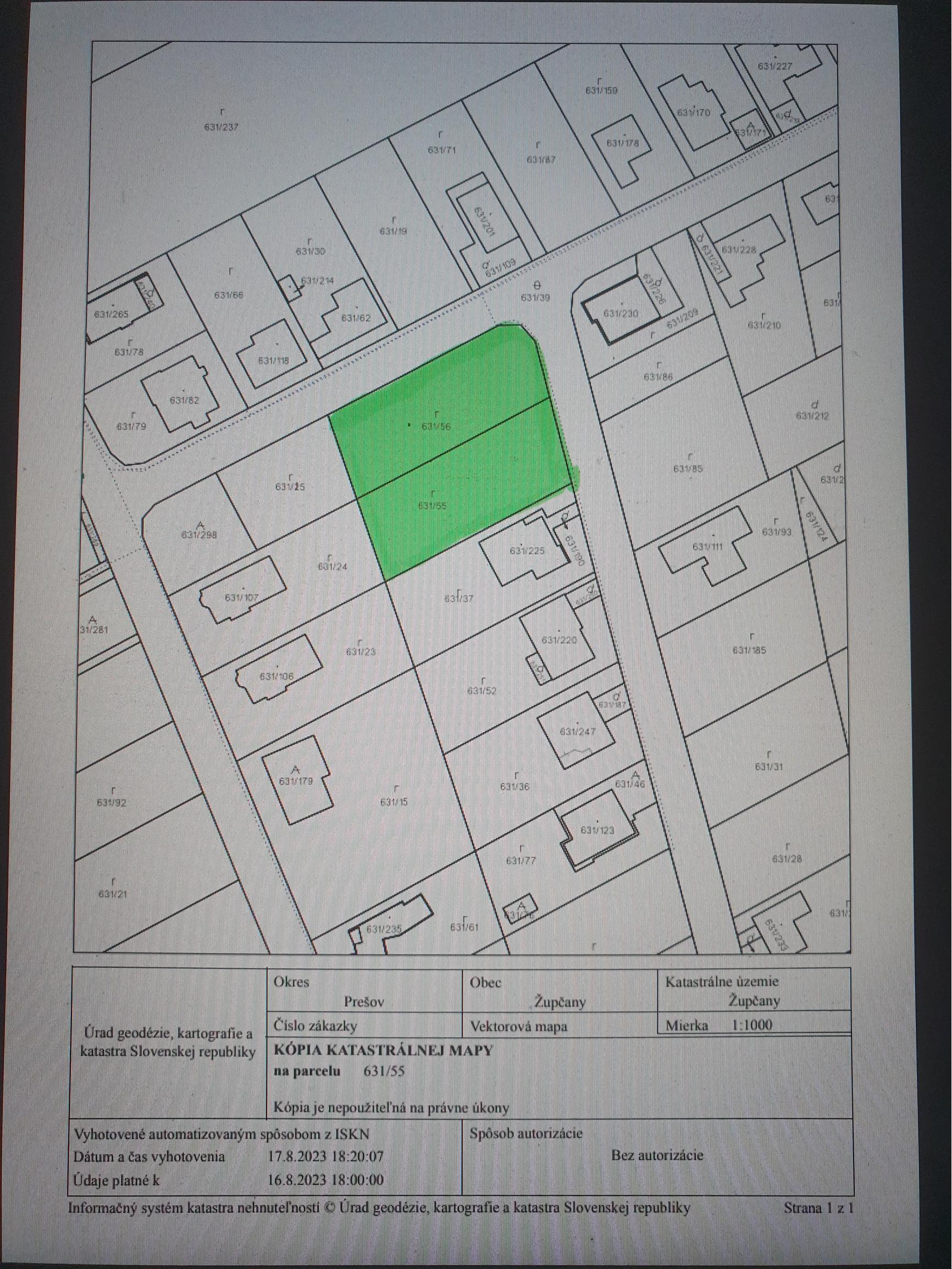 1. pozemok 1043 m2 parcela 631/55 cena za pozemok 118 000 €