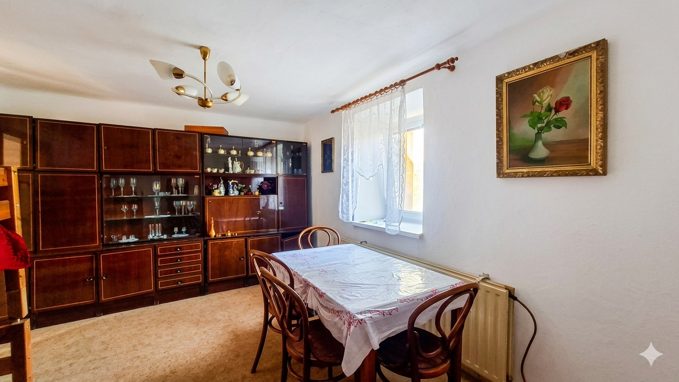 Dispozícia: Dom disponuje tromi priestrannými izbami, samostatnou kuchyňou a praktickou pivnicou. V podkroví sa nachádza ďalšia izba, ktorá ponúka dodatočný priestor alebo možnosť rozšírenia bývania.