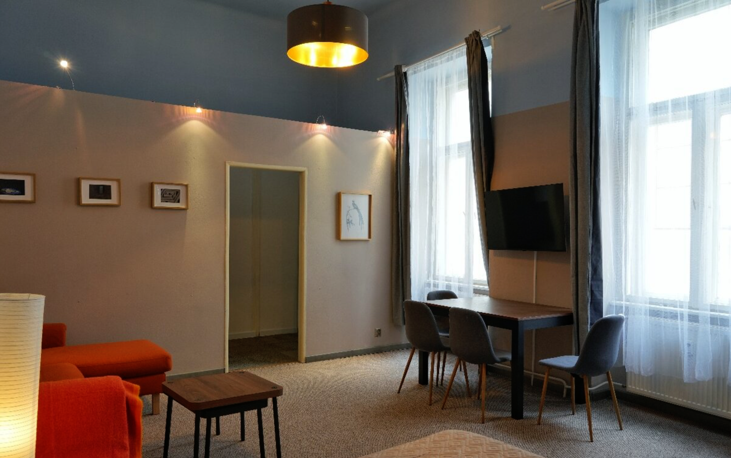 → obývacia izba s manželskou posteľou a gaučom
