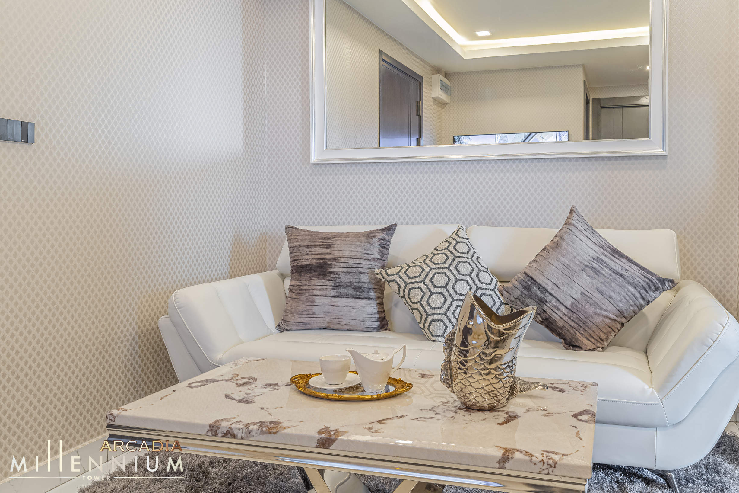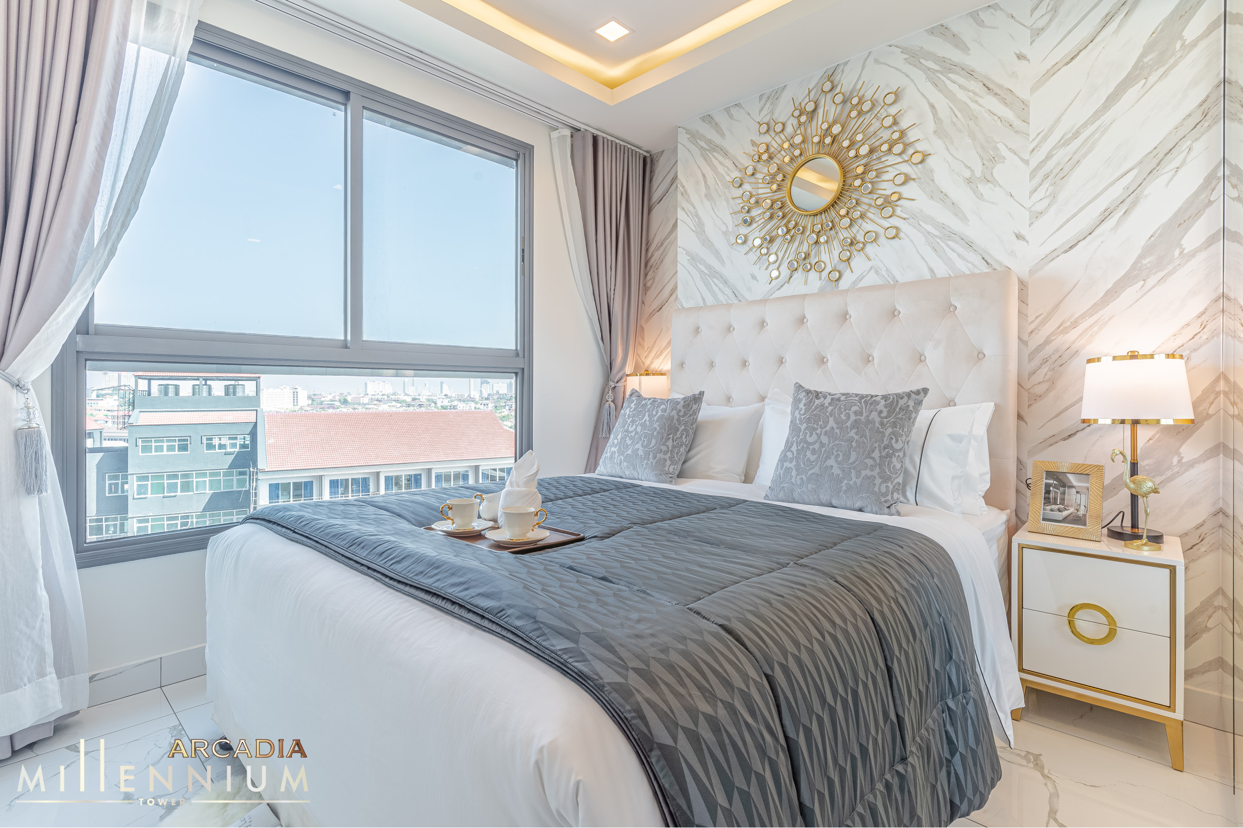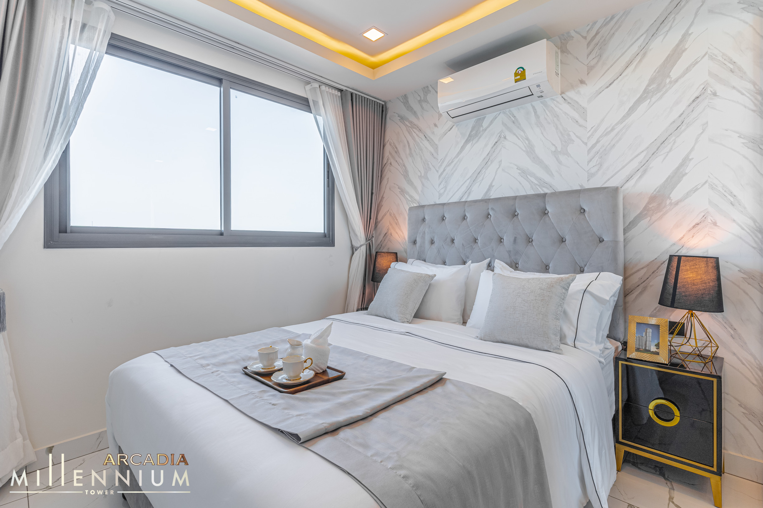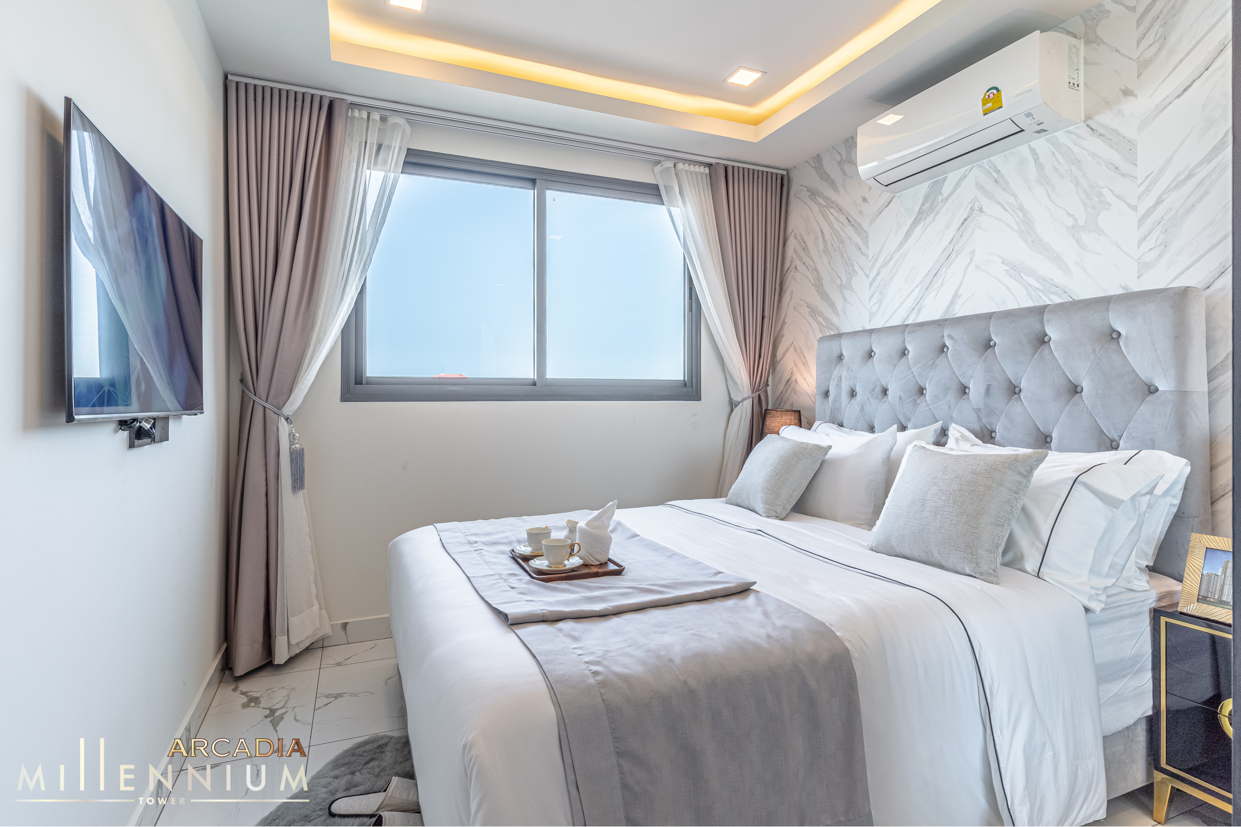 Realitná kancelária Leaders & Partners Vám predstavuje vzorový 2 izbový apartmán typ 2B-E s balkónom v apartmánovom komplexe Arcadia Milennium Tower, Pattaya-Thajsko.